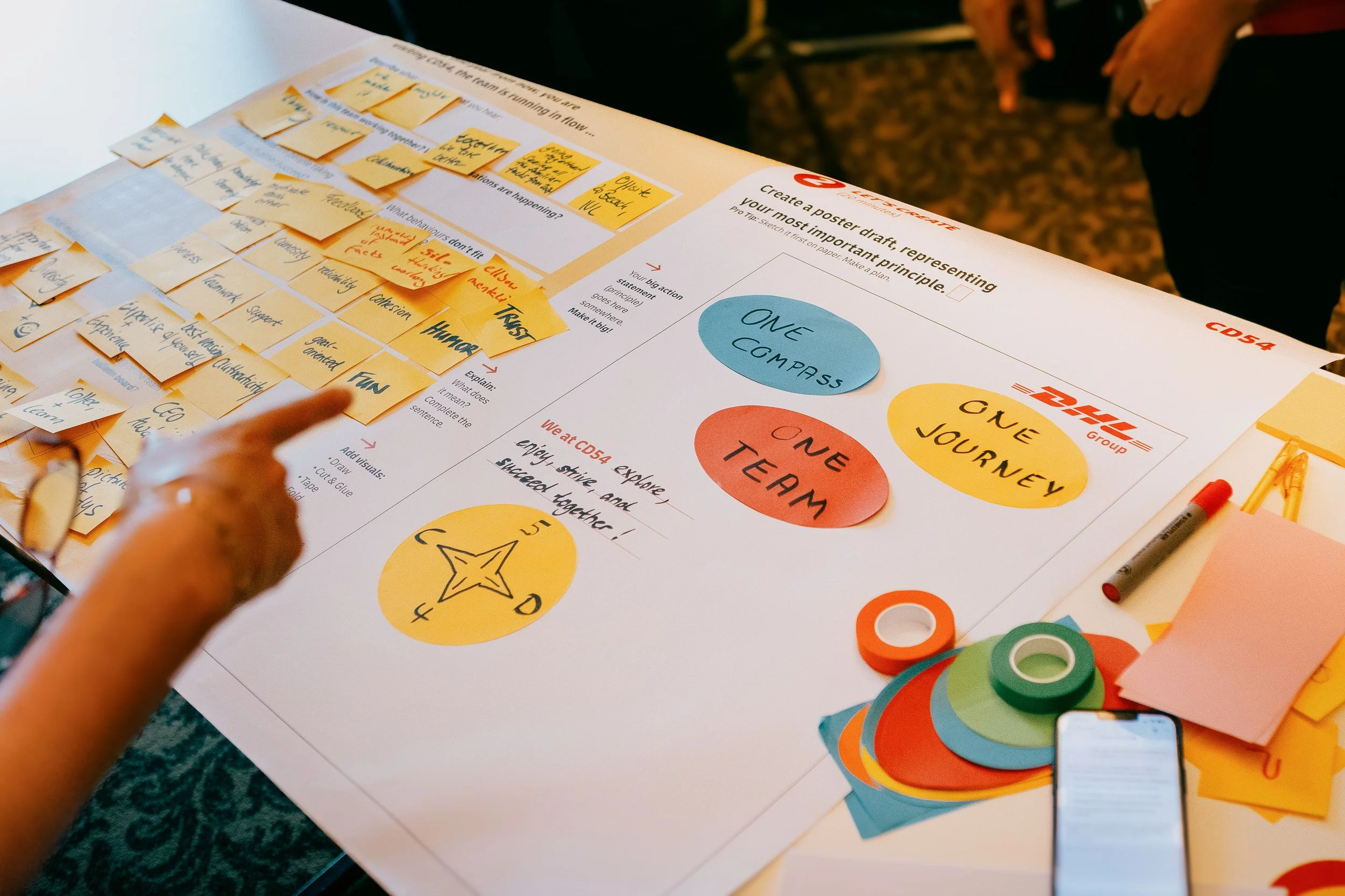 At DHL, two teams merged into one. For their offsite, their visionary executive leading the new formation had a clear goal in mind when she reached out to us: “I don’t want to prescribe culture — let’s create space for the team to define it themselves in an engaging way.”